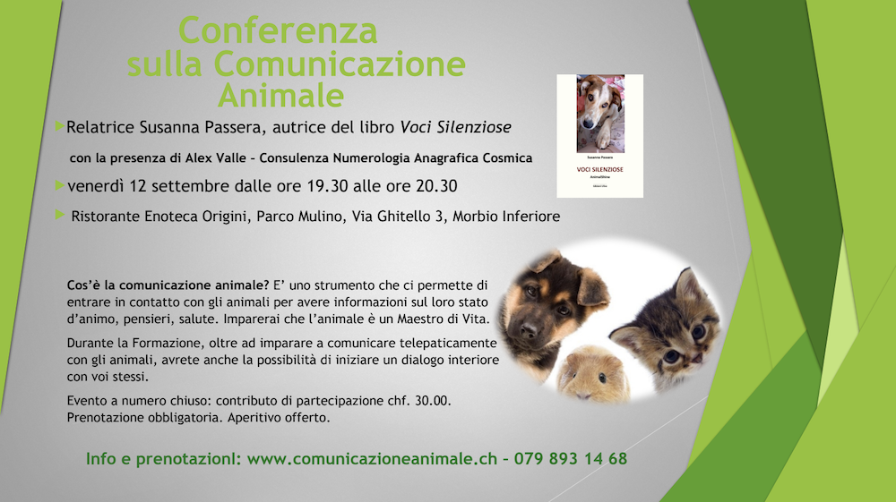 Venerdi 12 settembre dalle 19.30 alle 20.30. Evento a numero chiuso: contributo di partecipazione chf. 30.00. Prenotazione obbligatoria. Aperitivo offerto.